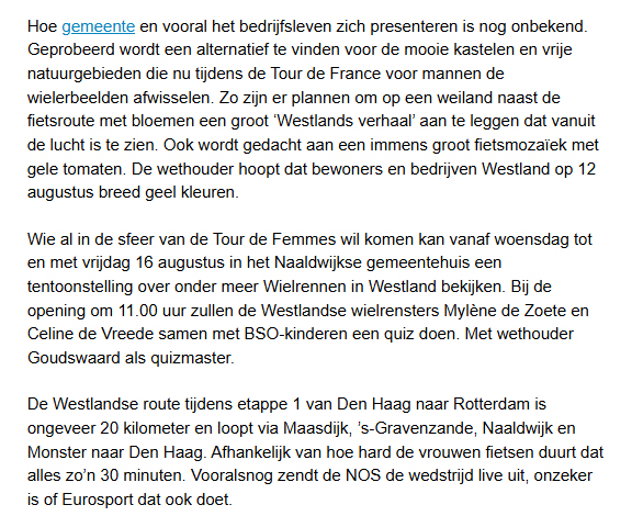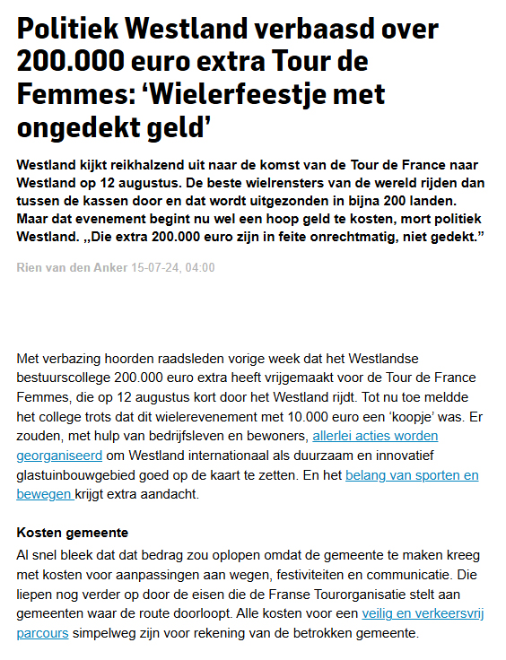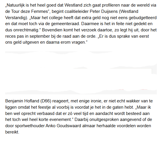 1. Is het niet verstandiger om eerst de fietspaden in Westland op orde te hebben, voordat we iets aan mogelijke publiciteit (en verkeershinder) gaan doen?