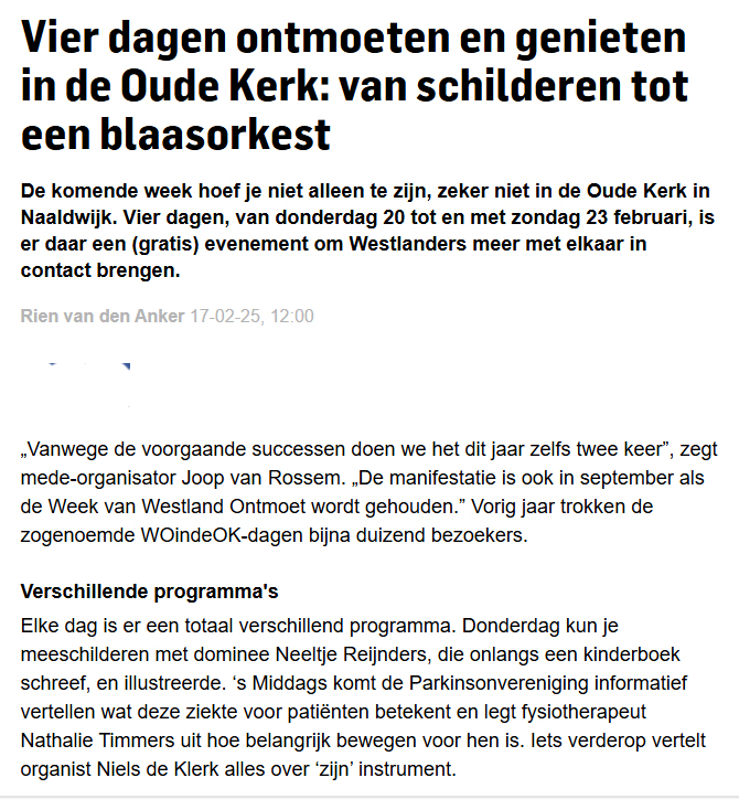 Vier dagen niet alleen in de Oude Kerk 18 feb 18 februari 2025 Verder lezen? Koptitel aanklikken. 250219 WOindeOK print