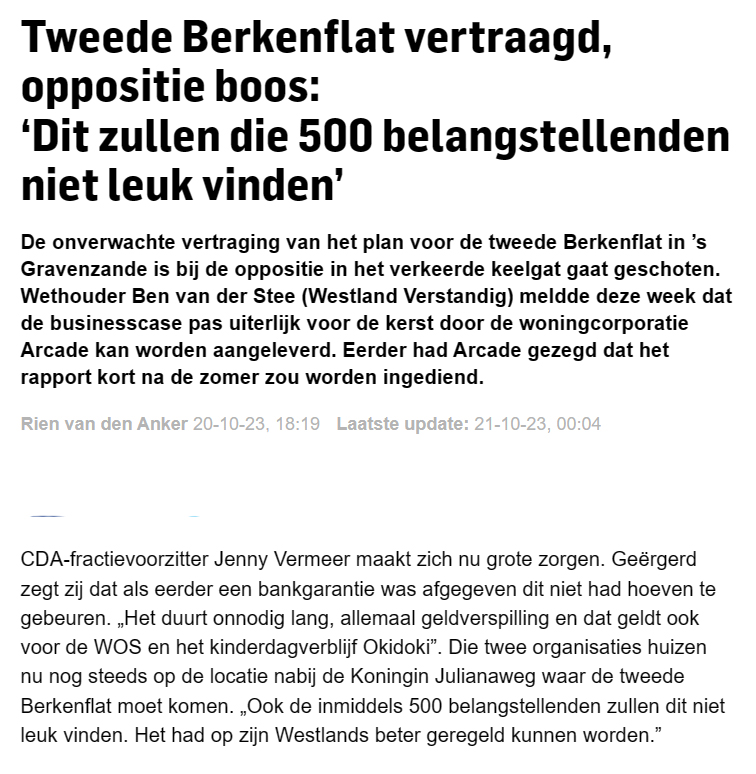 Vertraging voor tweede Berkenflat 24 okt 24 oktober 2023 Verder lezen? Koptitel aanklikken 231021 Boos om vertraging Berkenflat