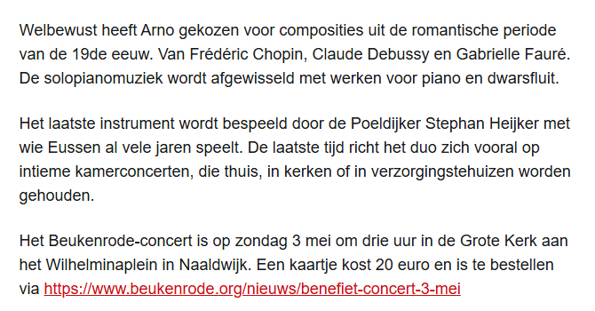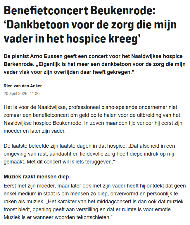Concert als dank voor goede zorg 21 apr 21 april 2026 Arno Eussen en Stephan Heijker concerteren. Foto PR. Verder lezen koptitel aanklikken. 260421 Concert vol dank voor goede zorg