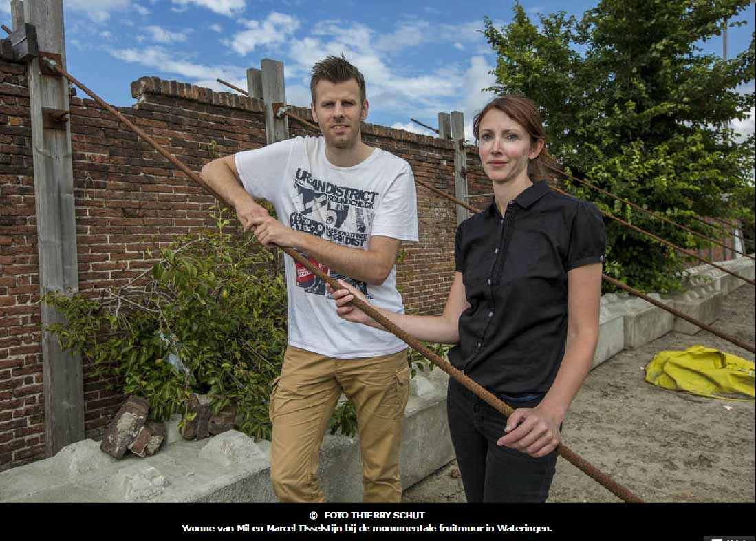 Yvonne van Mil en Marcel IJsselstijn bij de Fruitmuur in Poeldijk.