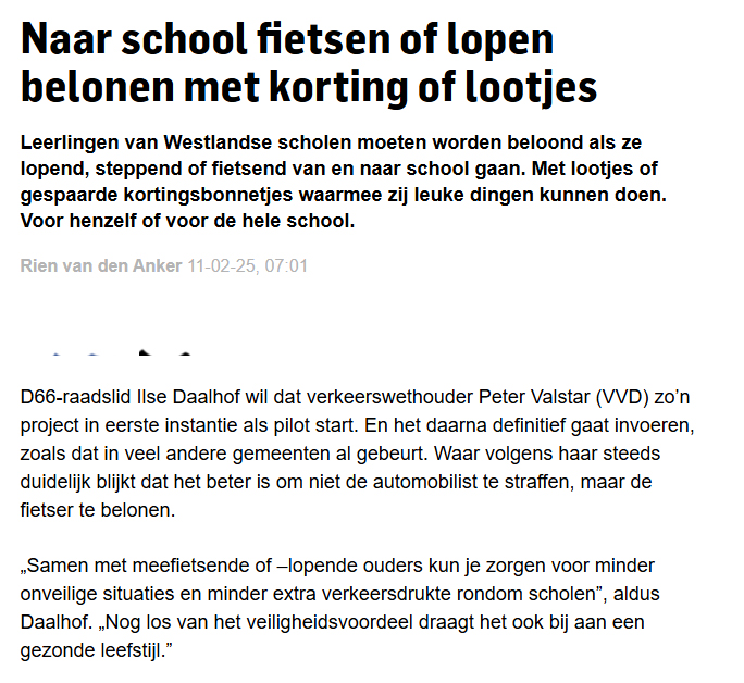 Fietsende scholieren belonen 11 feb 11 februari 2025 Verder lezen? Koptitel aanklikken. 250211 Naar school fietsen belonen
