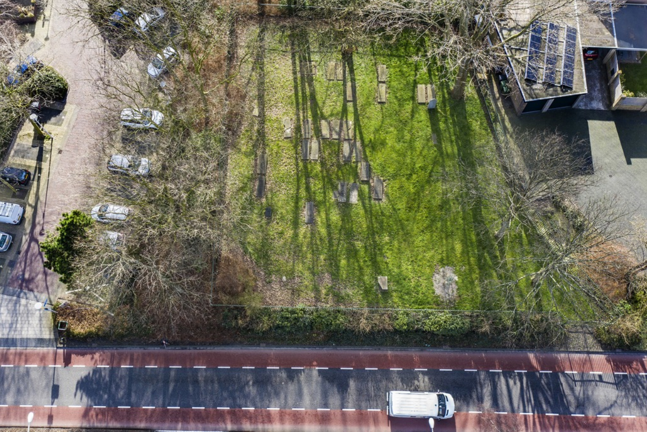 Joods kerkhof moet waardig monument worden 26 feb 26 februari 2021 210226 Campagne Joods kerkhof Verder lezen, op koptitel klikken Drone-foto van de Joodse begraafplaats in Naaldwijk. FOTO THIERRY SCHUT Een van de graven. FOTO SJW