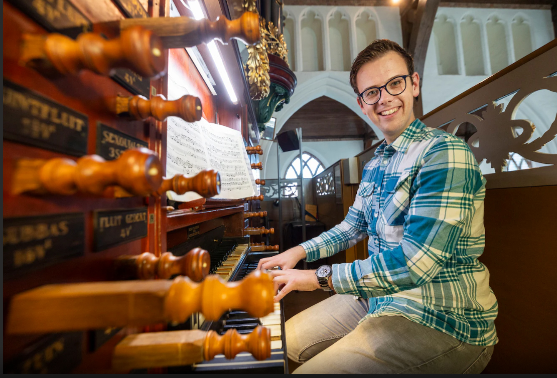 Niels de Klerk achter ‘zijn’ orgel. Foto Thierry Schut