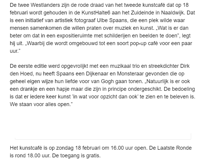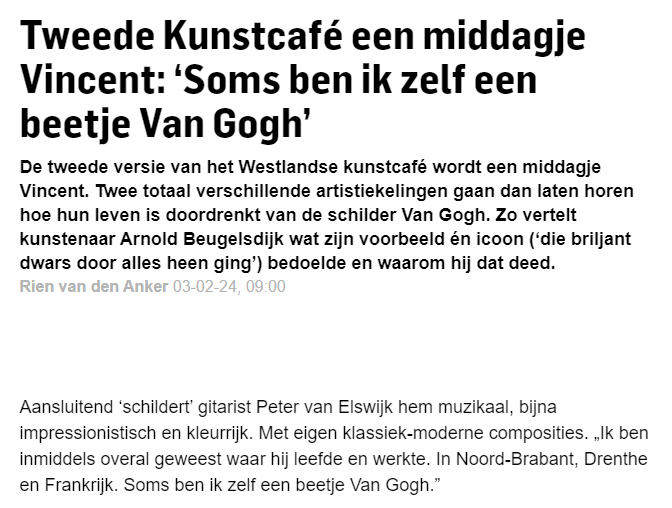 Middagje Vincenten 7 feb 7 februari 2024 Meer lezen? Koptitel aanklikken. 240207 Vincenten tijdens tweede Kunstcafé
