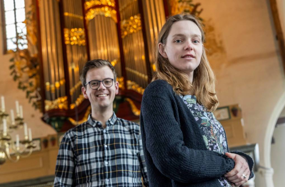 Mirjam en Niels in de Oude Kerk. FOTO THIERRY SCHUT