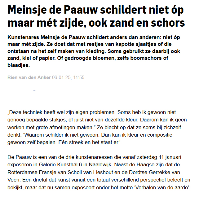 Niet op, maar met zijde 2 jan 2 januari 2025 Verder lezen, koptitel aanklikken. 250102 Meinsje schidert niet op maar met zijde