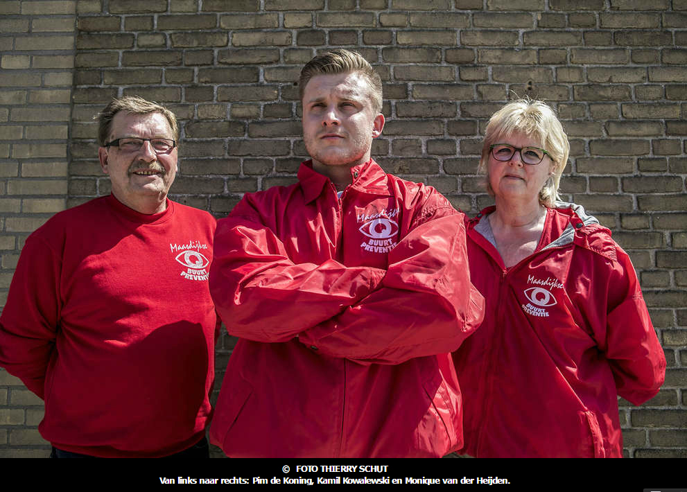De Poolse Kamil tussen twee Maasdijkse buurtpreventen. FOTO THIERRY SCHUT