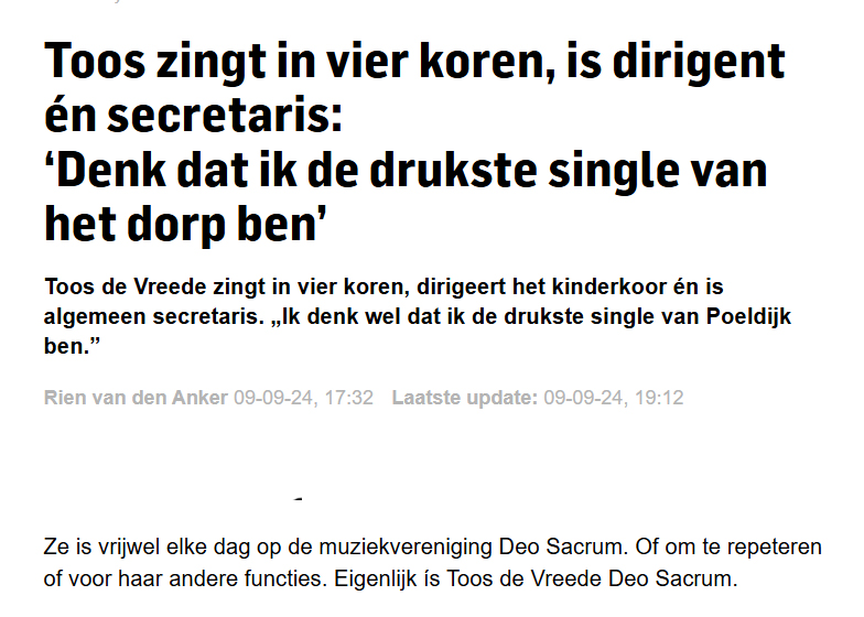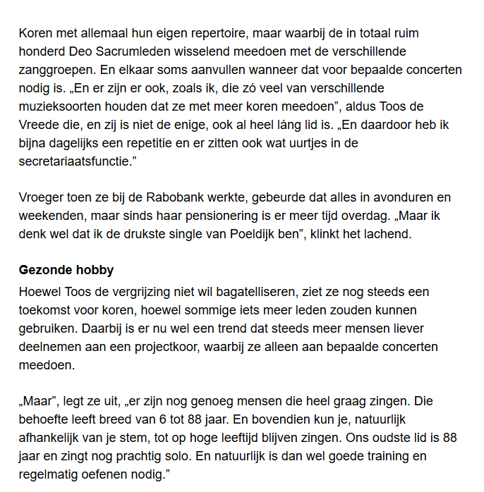 Toos de Vreede ís Deo Sacrum 10 sep 10 september 2024 Toos de Vreede met Couleur Vocale. Foto Thierry Schut Verder lezen? Koptitel aanklikken 240910 Toos de Vreede Couleur Vocale