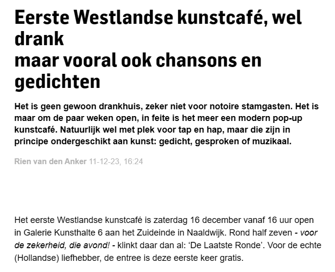 Ulbe schenkt in eerste kunstcafé 12 dec 12 december 2023 Kunstcafébaas Ulbe Spaans. FOTO THIERRY SCHUT