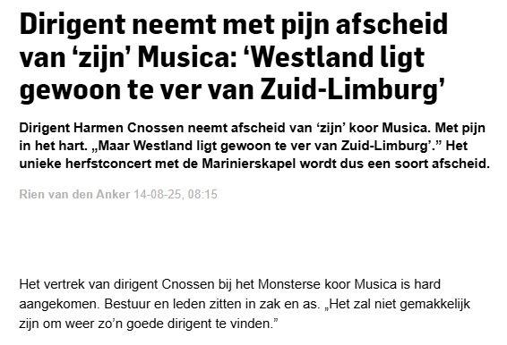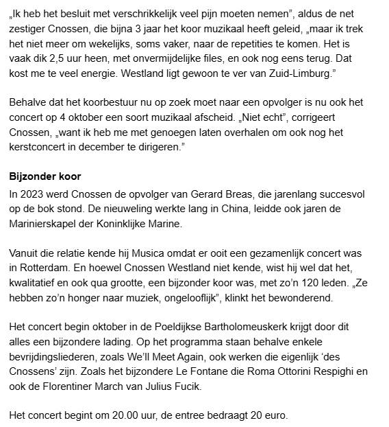 Dirigent Harmen Cnossen vertrekt met pijn bij het koor Musica. Foto PR