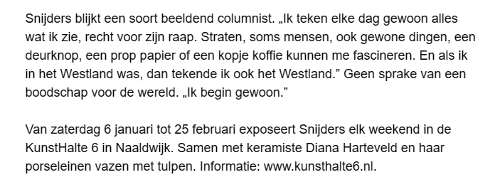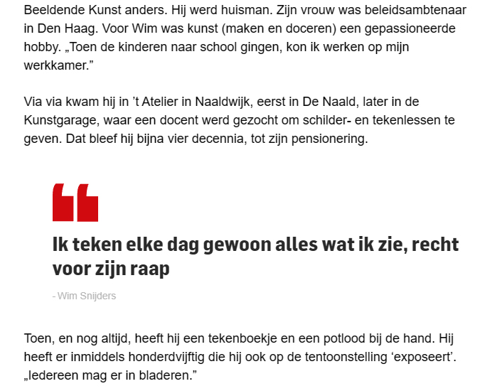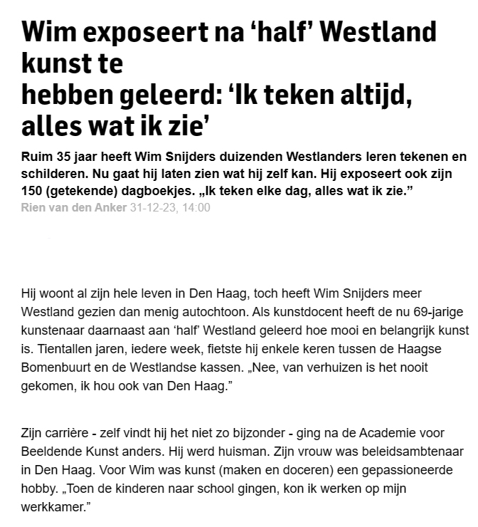 Wim tekent altijd alles 31 dec 31 december 2023 Wim Snijders tekent altijd alles. FOTO PR Tekeningen van Wim Snijders.