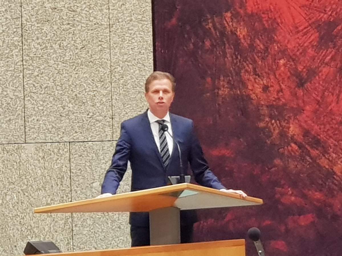 Westlander Arne Weverling tijdens zijn maidenspeech. FOTO via Twitter