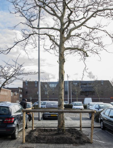 Allemaal tijdelijk, de bomen komen straks in een plantsoen, zegt de gemeente. Maar ze zijn nu verhuisd omdat dat zomers niet kan. Een gewoon mens zou dan een bestaand plantsoenplekje zoeken. Wie op de Emmastraat rondkijkt weet dat zo te vinden maar dan moet je wel kijken. Óp Twitter schreef iemand nog dat het een mooie boom is. Dat vindt iedereen, maar wel op een verkeerde plek.