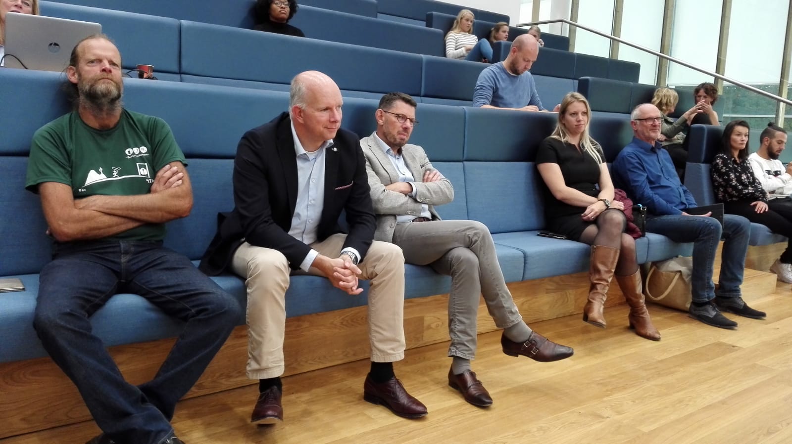 190919 Slechtzittende banken op de publieke tribuneTijdens het jongerendebat merkten raadsleden en bestuurders dat de publieke tribunebanken niet echt lekker zitten. FOTO RIEN VAN DEN ANKER