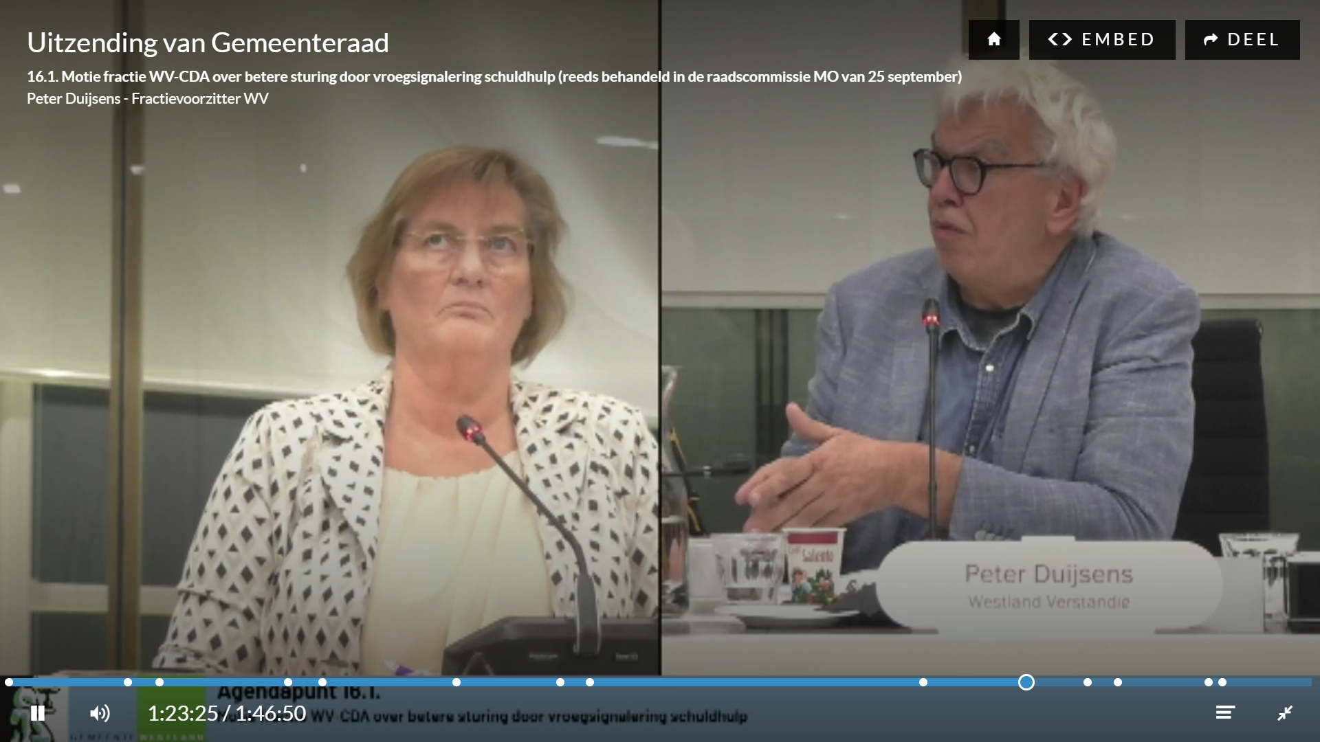 Opnieuw Duijsens, nu tot zijn wethouder Carlieke van Staalduinen die hulp van boven zoekt.