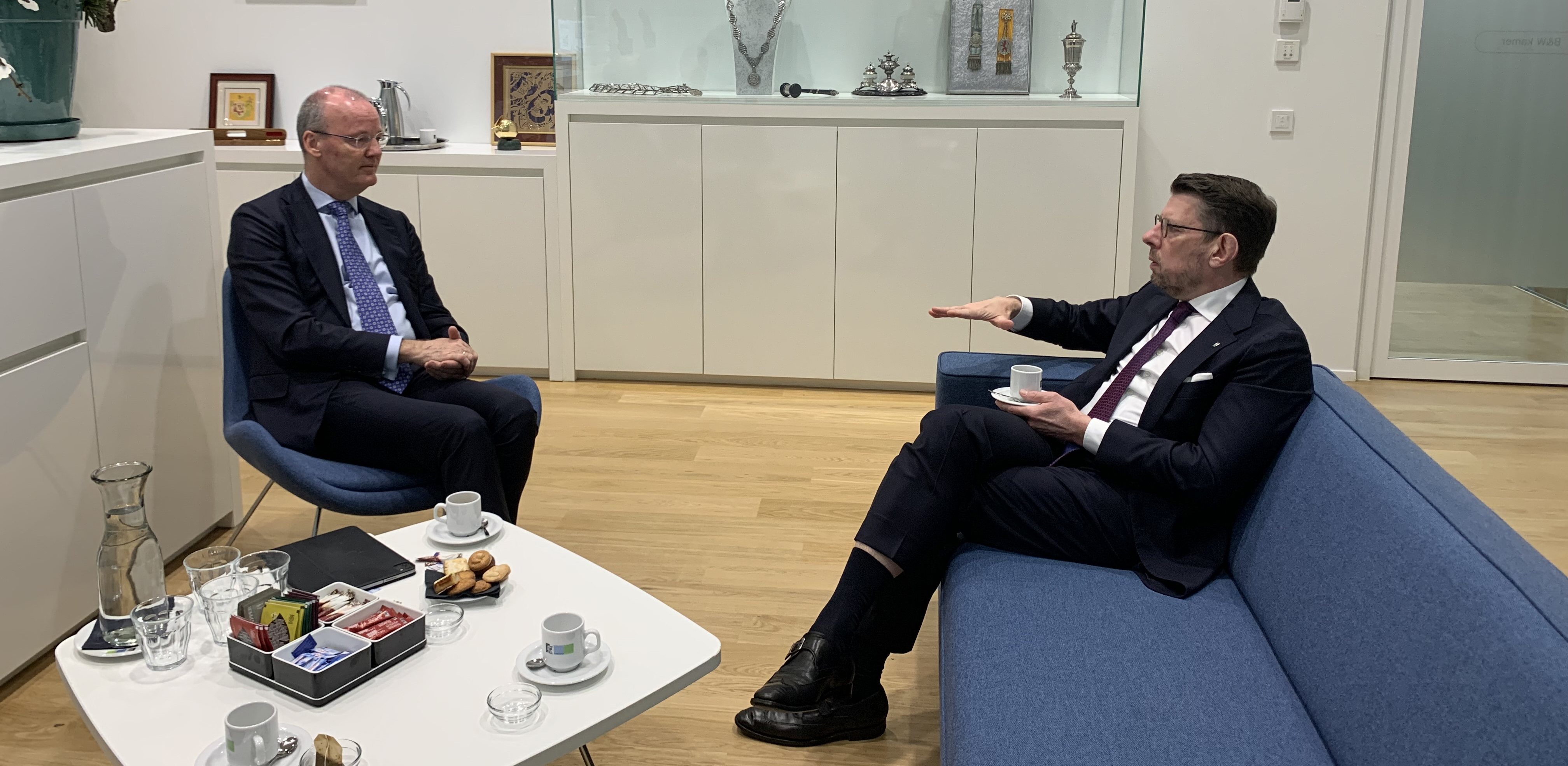 240406 Klaas Knot en Bouke Arends 1Wat zegt Bouke nu met zijn vlakke hand tegen Klaas Knot? FOTO GEMEENTE WESTLAND